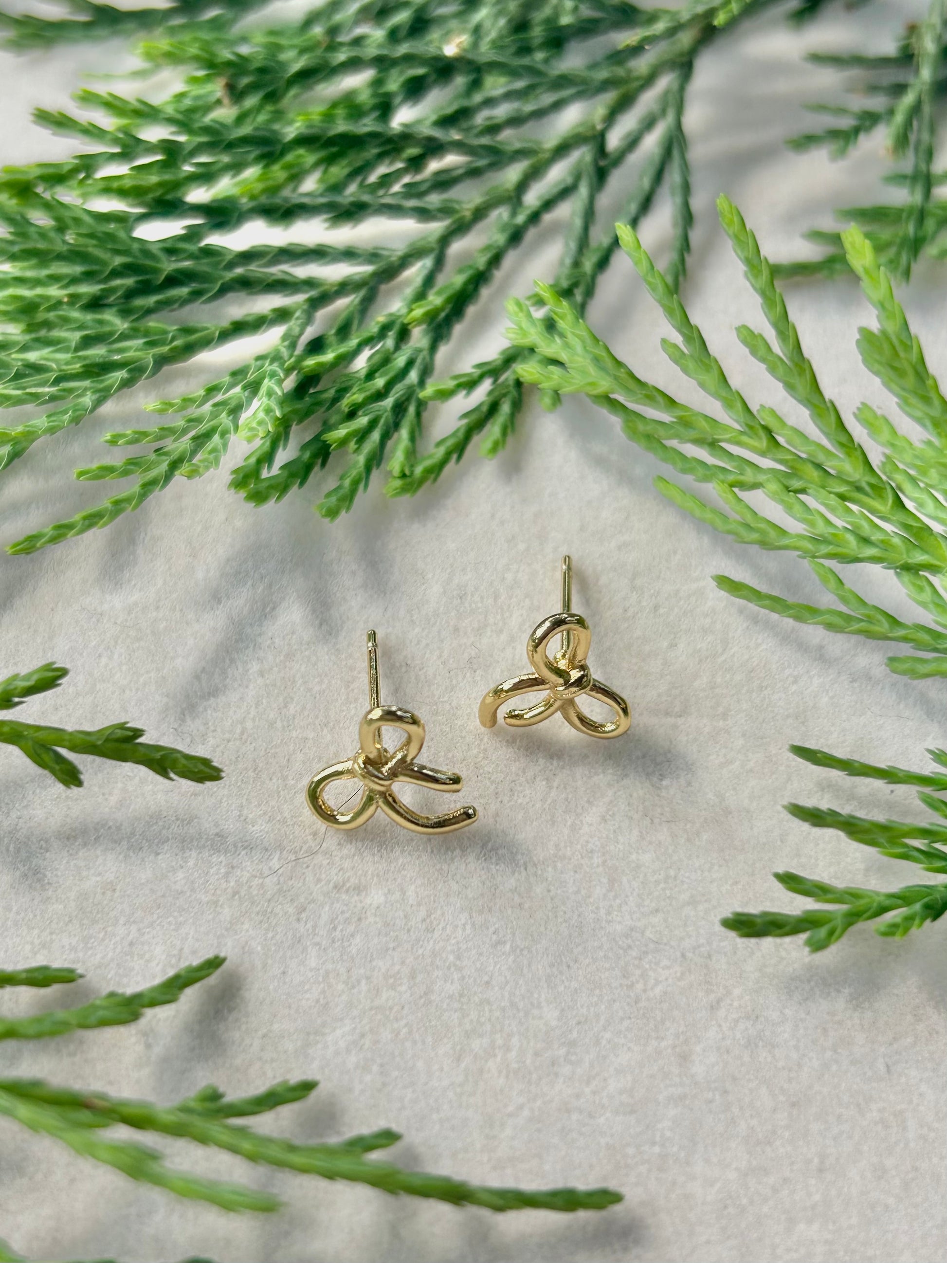 18k gold plated dainty bow stud earrings.